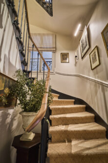 Un poêle en faïence historique, se mêle aux moulures haussmanniennes en bois de l’ensemble. Des gravures d’époque vous rappellent le passé prestigieux d’une grande famille du quartier. Un bureau doté d’un mini bar et machine Nespresso, un dressing, de lourds rideaux au blanc immaculé laissent apparaitre de grandes fenêtres sur rue ou sur cour. Le velours des têtes de lit, faites à la main et sur mesure réchauffe l’environnement. Vous trouverez une charmante salle de bain, avec douche à l’italienne, les murs sont habillés de faïence de couleur bordeaux et crème.